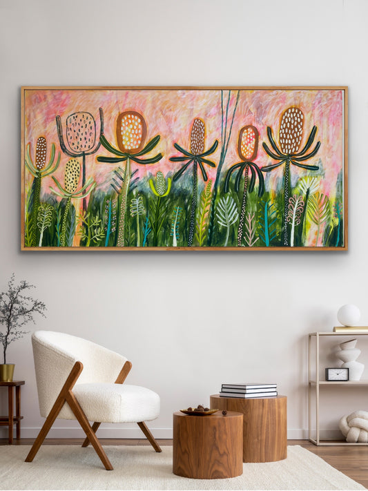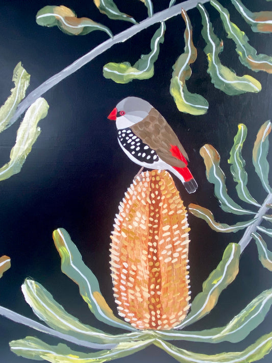 We are so thrilled with our black cockatoo commission. Kate was eager to listen to our ideas and worked with a palette that complemented both the furnishings in our space and the natural environment of the reserve we back onto. It's the perfect addition to our living room and we adore it.