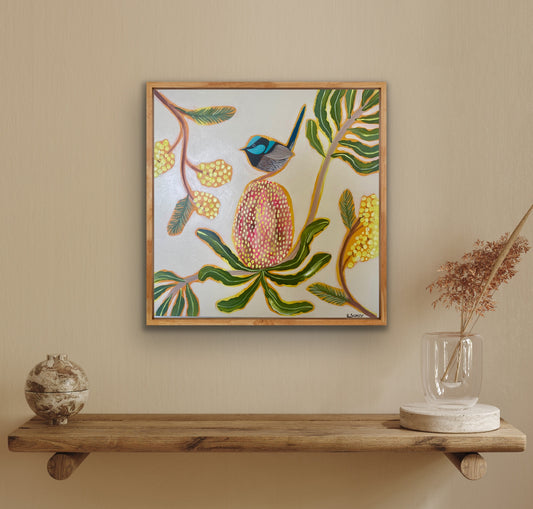 Kate has been creating and selling her unique nature-inspired artwork since 1997. Her work is a poetic exploration of balance and harmony, creating a sense of freedom and playfulness. Colour, form, pattern and texture are interwoven to create her dynamic pieces. Her diverse style includes abstracts, landscapes and semi-abstracted native floral and bird paintings.