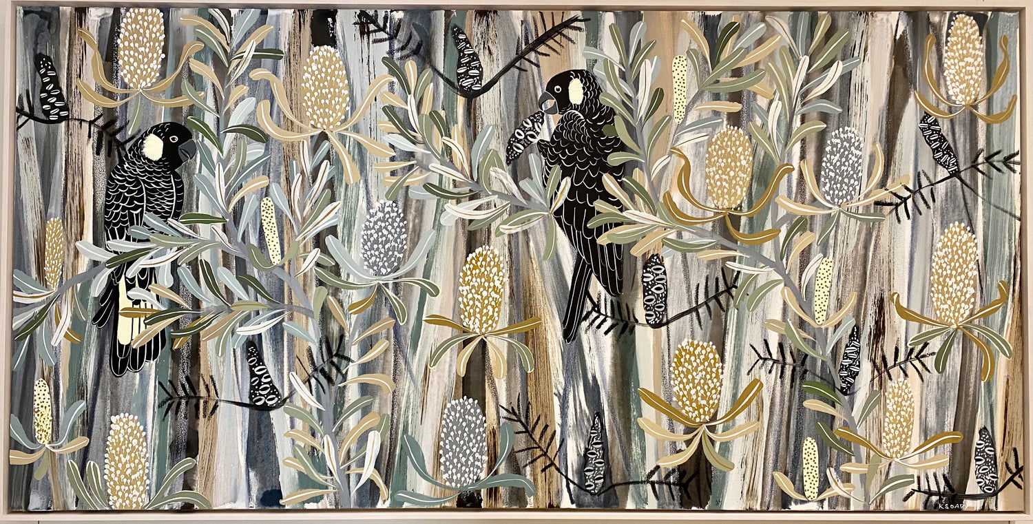 Nature of the Blue Mountains is inspiration for my work. Musicality is evoked by line, colour and overlaying rhythmic forms. This semi abstract piece depicts Australian native flora.