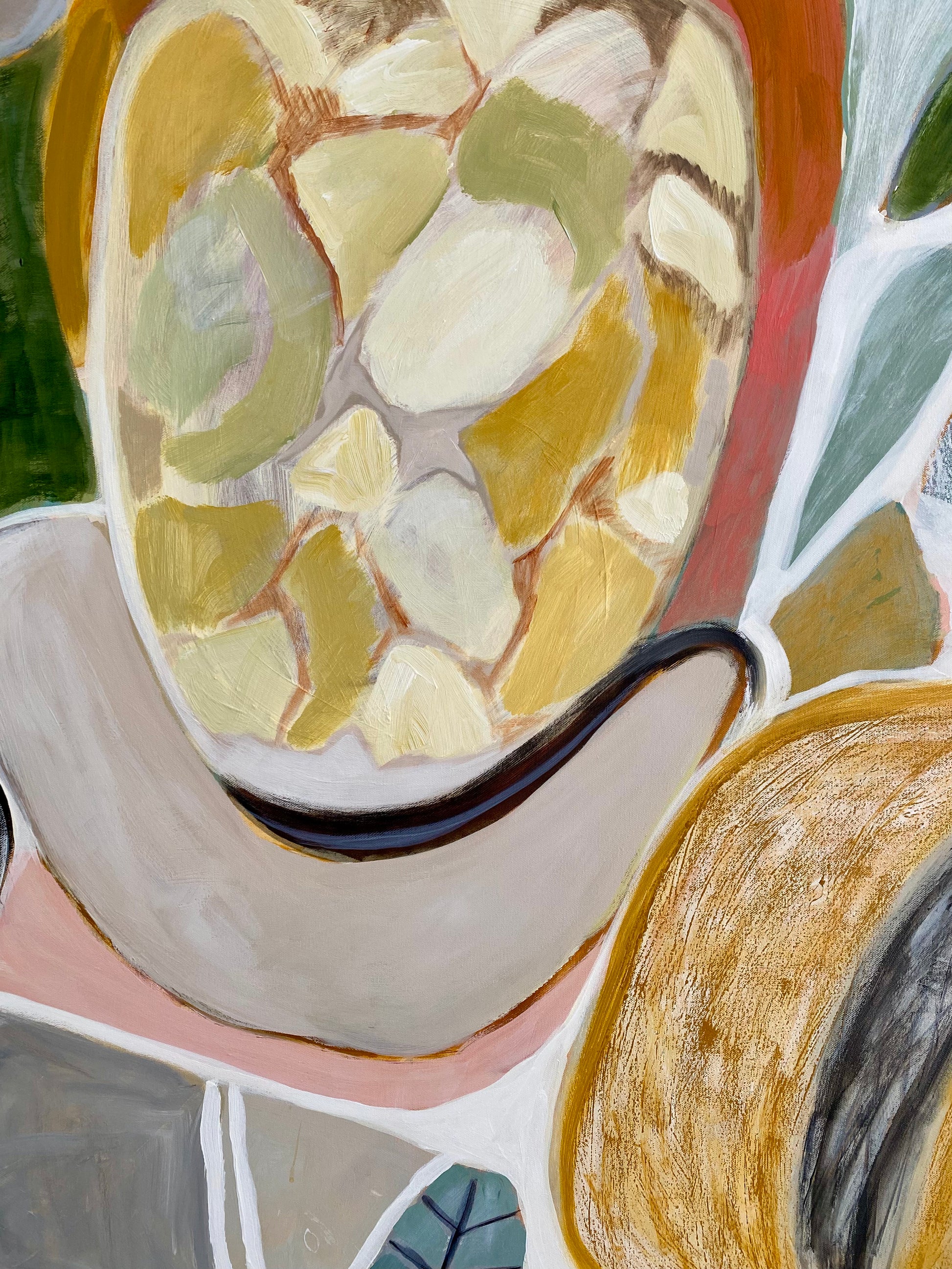 My abstract pieces are like visual music, expressing a poetic harmony and melody in paint. Using the language of colour, form, texture and mark-making to create the composition, my work is informed by nature and my life experience.