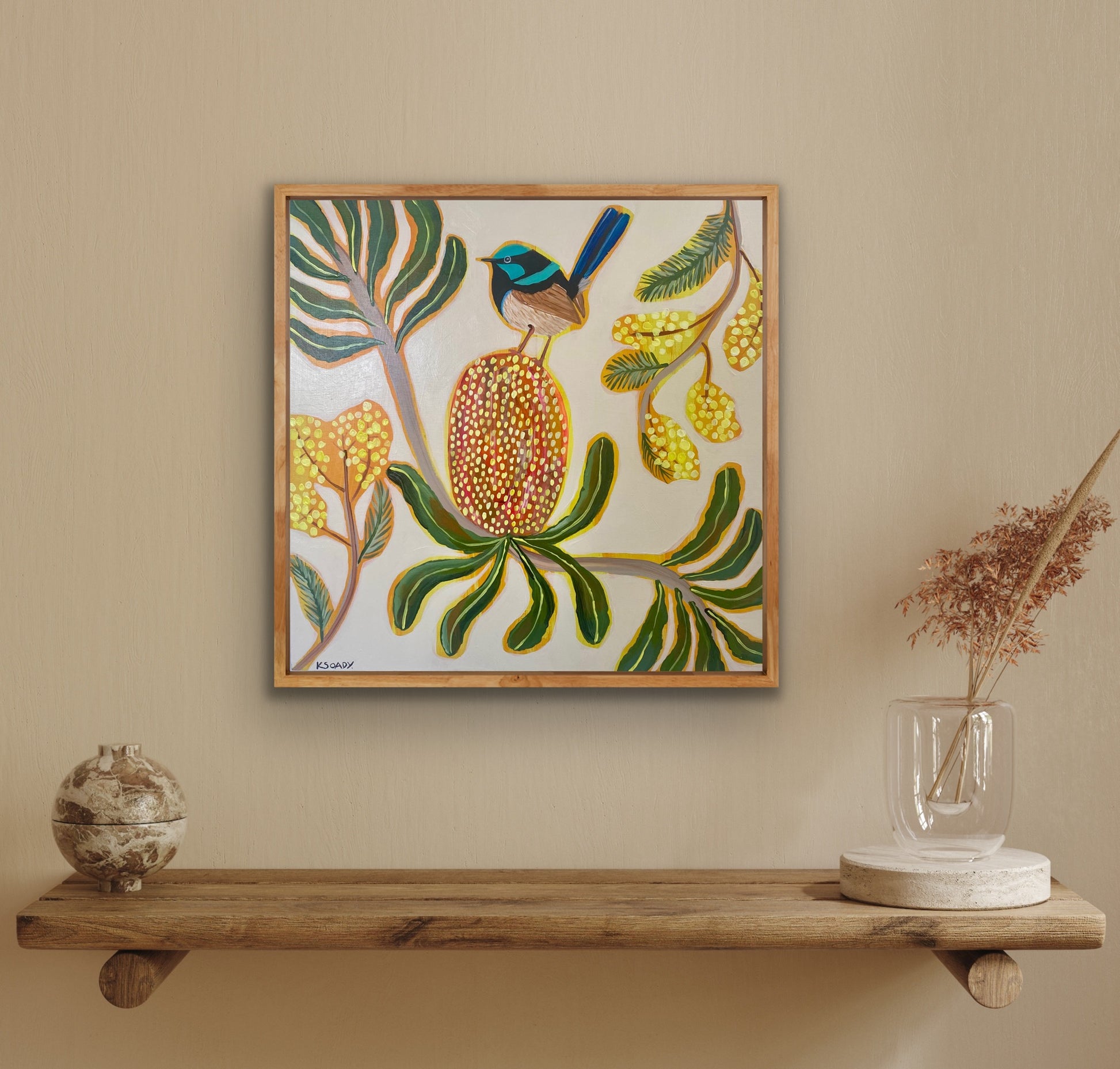 Framed in Tasmanian Oak in the Blue Mountains and ready to hang.