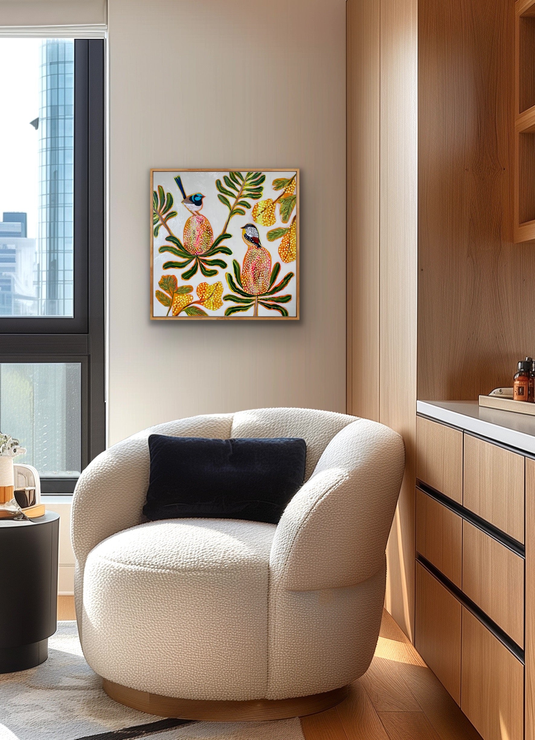 Framed in Tasmanian Oak in the Blue Mountains and ready to hang.