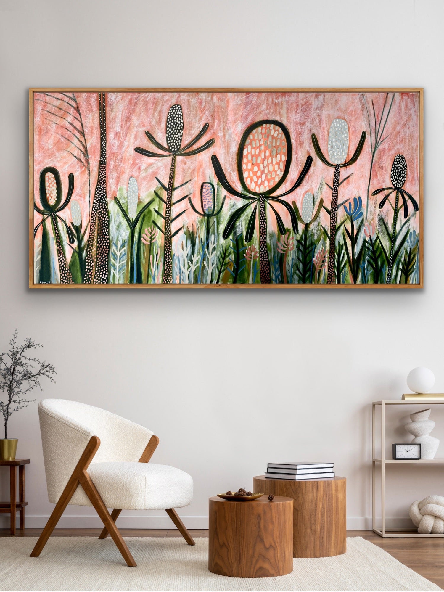 Framed in Tasmanian Oak in the Blue Mountains and ready to hang.
