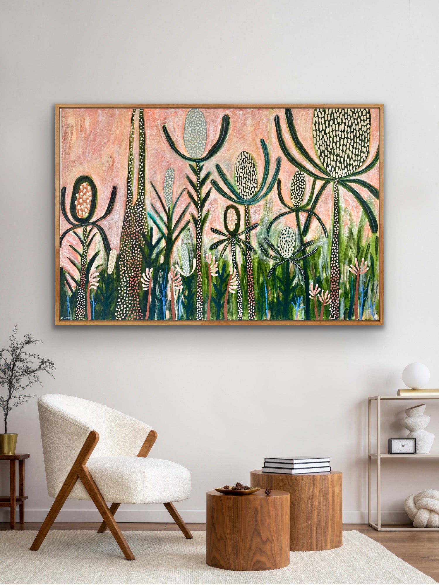 Framed in Tasmanian Oak in the Blue Mountains and ready to hang.