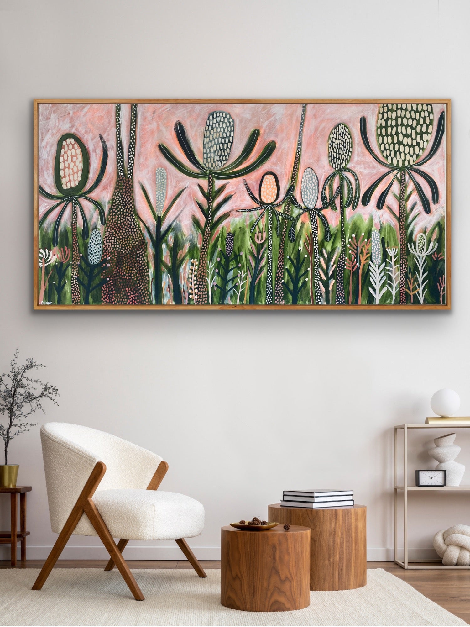 Framed in Tasmanian Oak in the Blue Mountains and ready to hang.