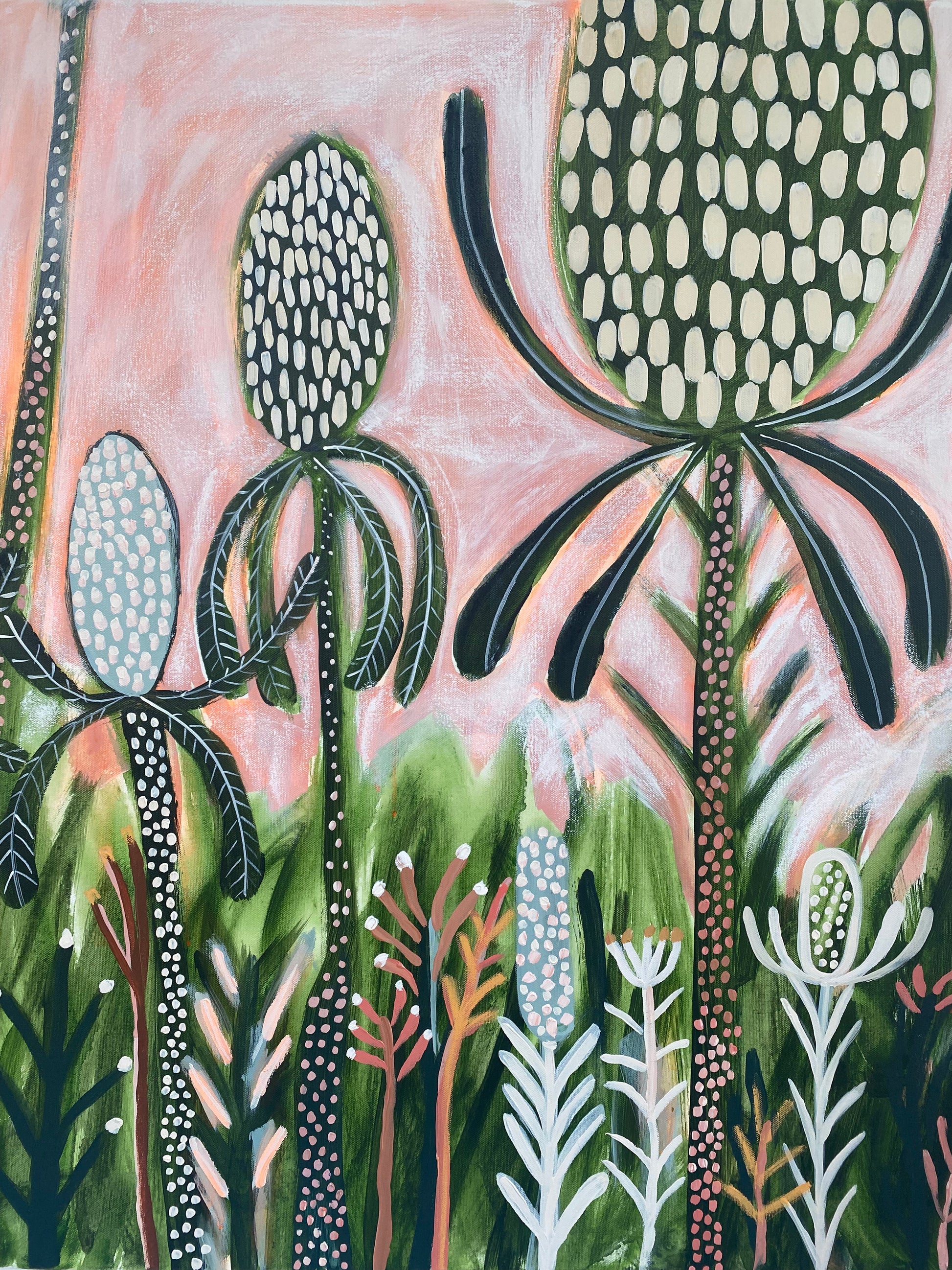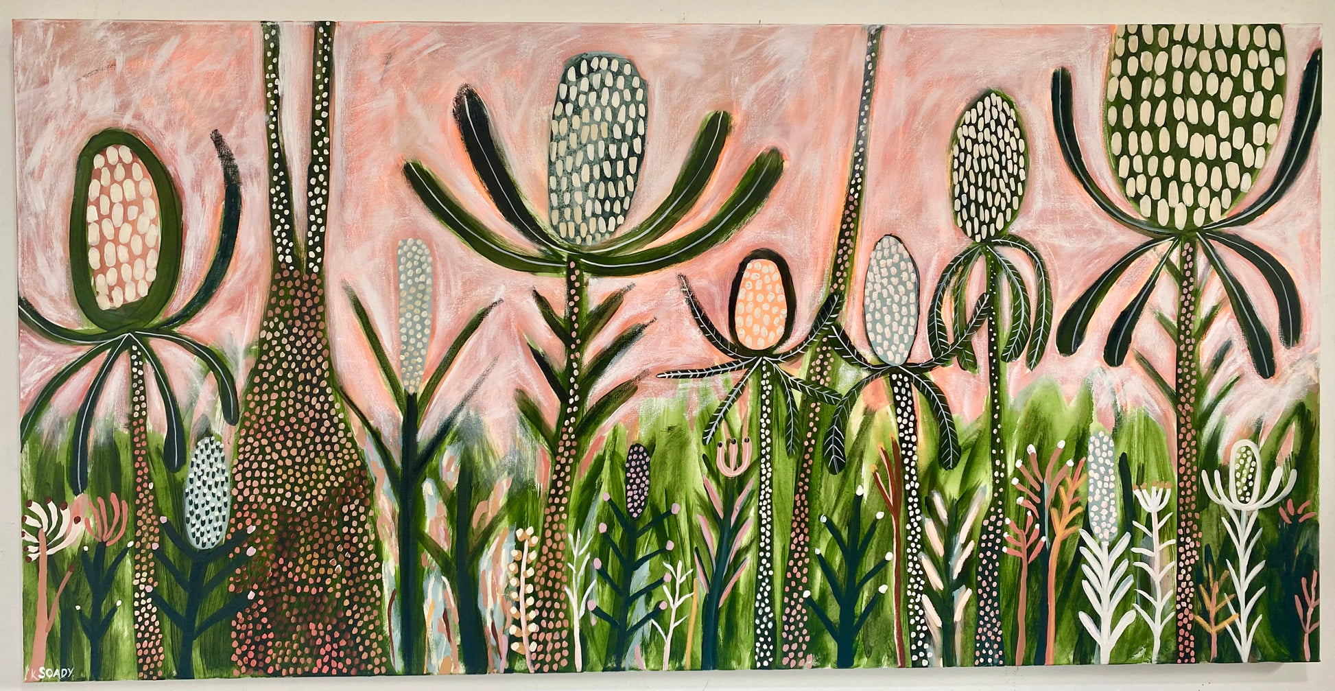 Nature of the Blue Mountains is the inspiration for my work. Musicality is evoked by line, colour, and overlaying rhythmic forms. There is a joyful wonder in this playful nature series of the Blue Mountains bush.